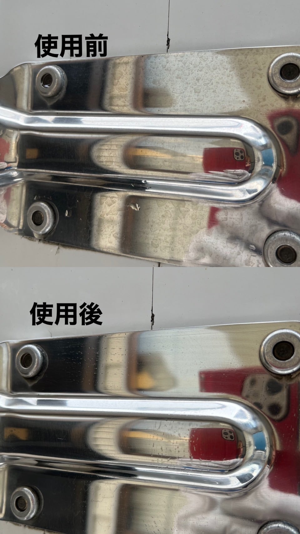 3. KCクロスで丁寧に水分を拭き取り、センマプラスで仕上げを行います。