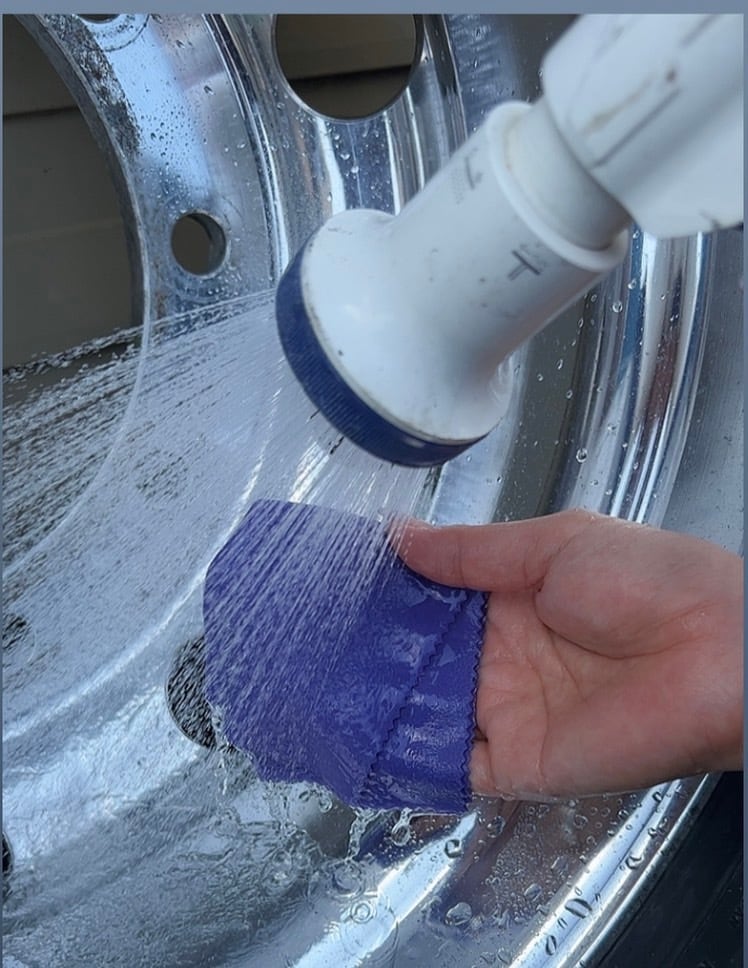 トレールジェル洗浄後、濡れたままのアルミホイールにワンプッシュしてKCクロスで水洗いすると綺麗になります。ガラスやバックミラーのウロコも綺麗になります。